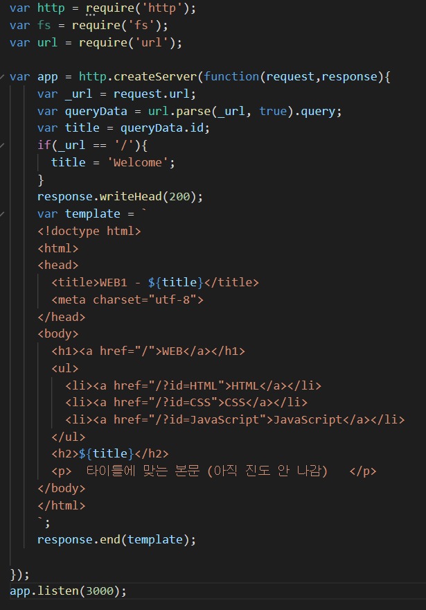 : JavaScript를 이용해서 Node.js를 제어해 동적으로 HTML 코드를 생성하는 웹애플리케이션을 만들기