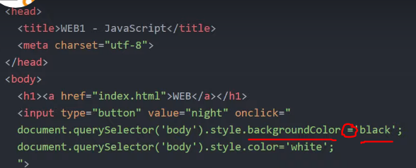* 스타일을 바꾸고 싶다면(css 효과) document.querySelector(selectors).style