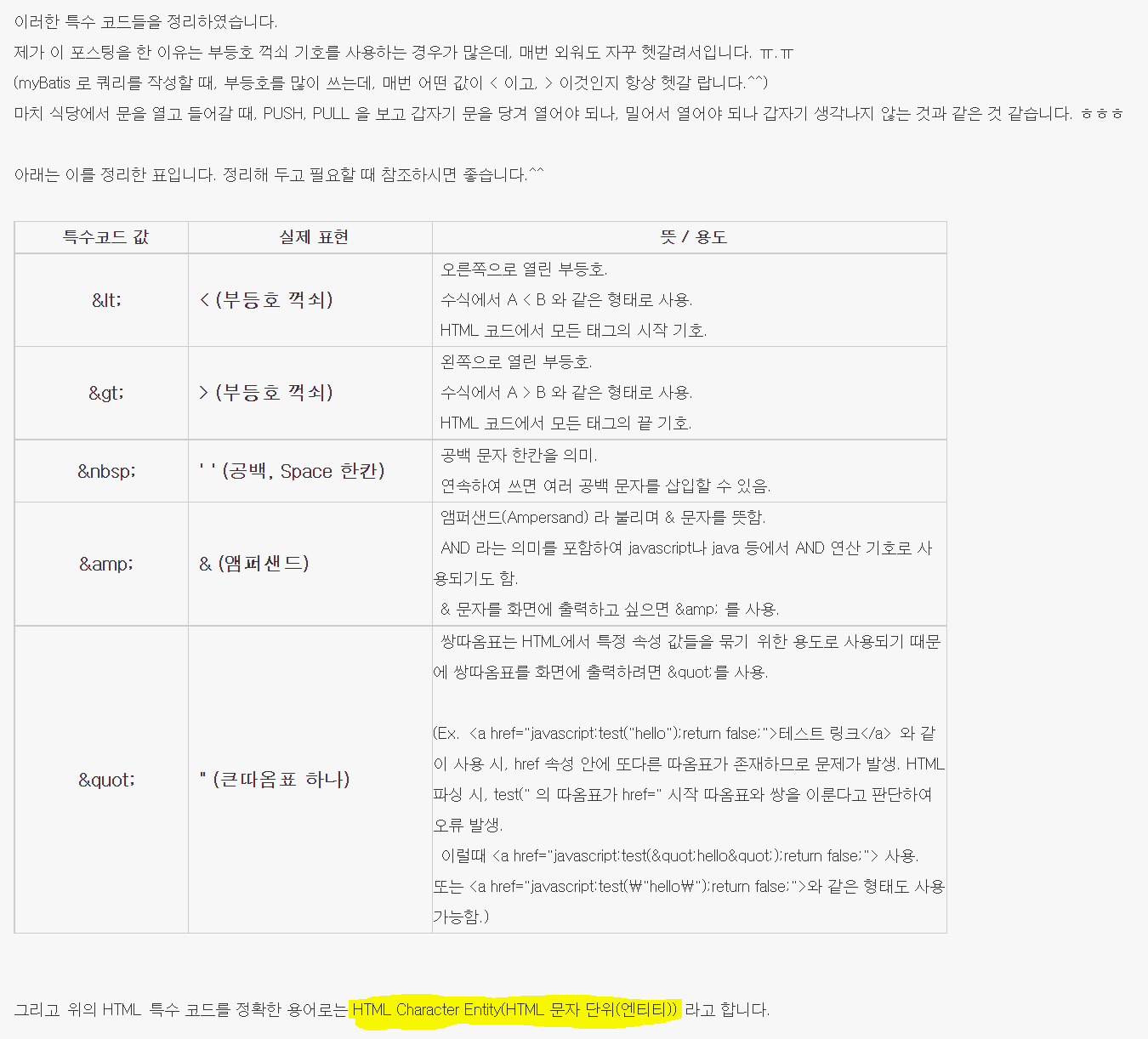 *html에서는 > < 대신 <(less than)과 >(greater than) 사용